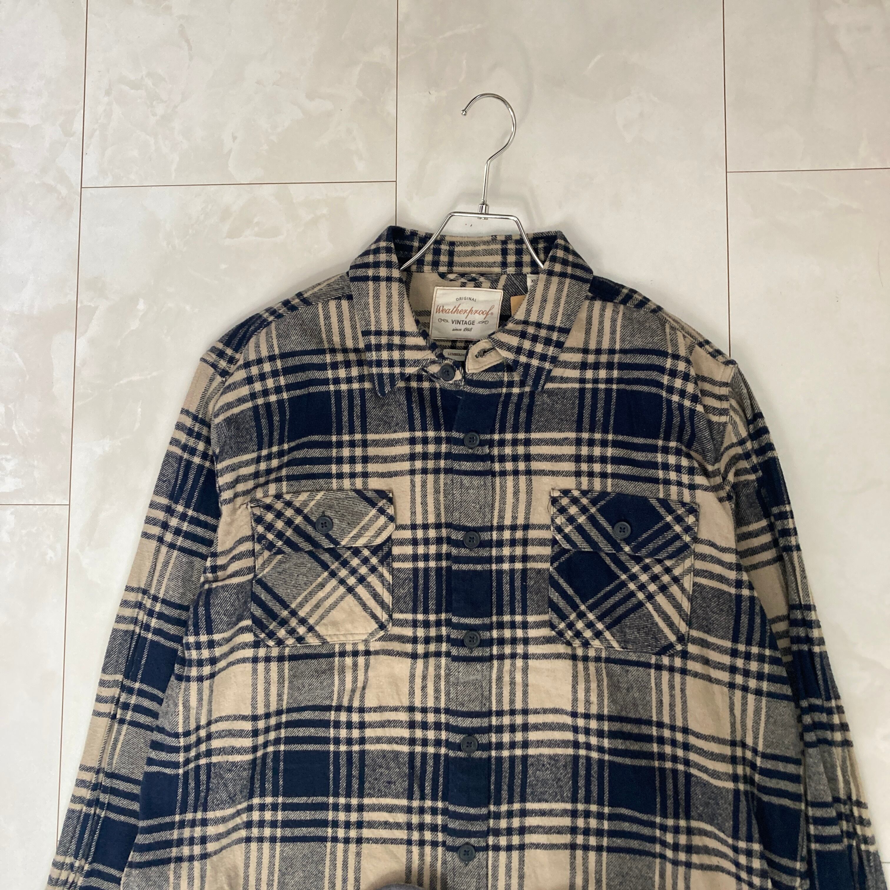 【ショート丈リメイク】Weather proof 長袖ネルシャツ XL チェック柄