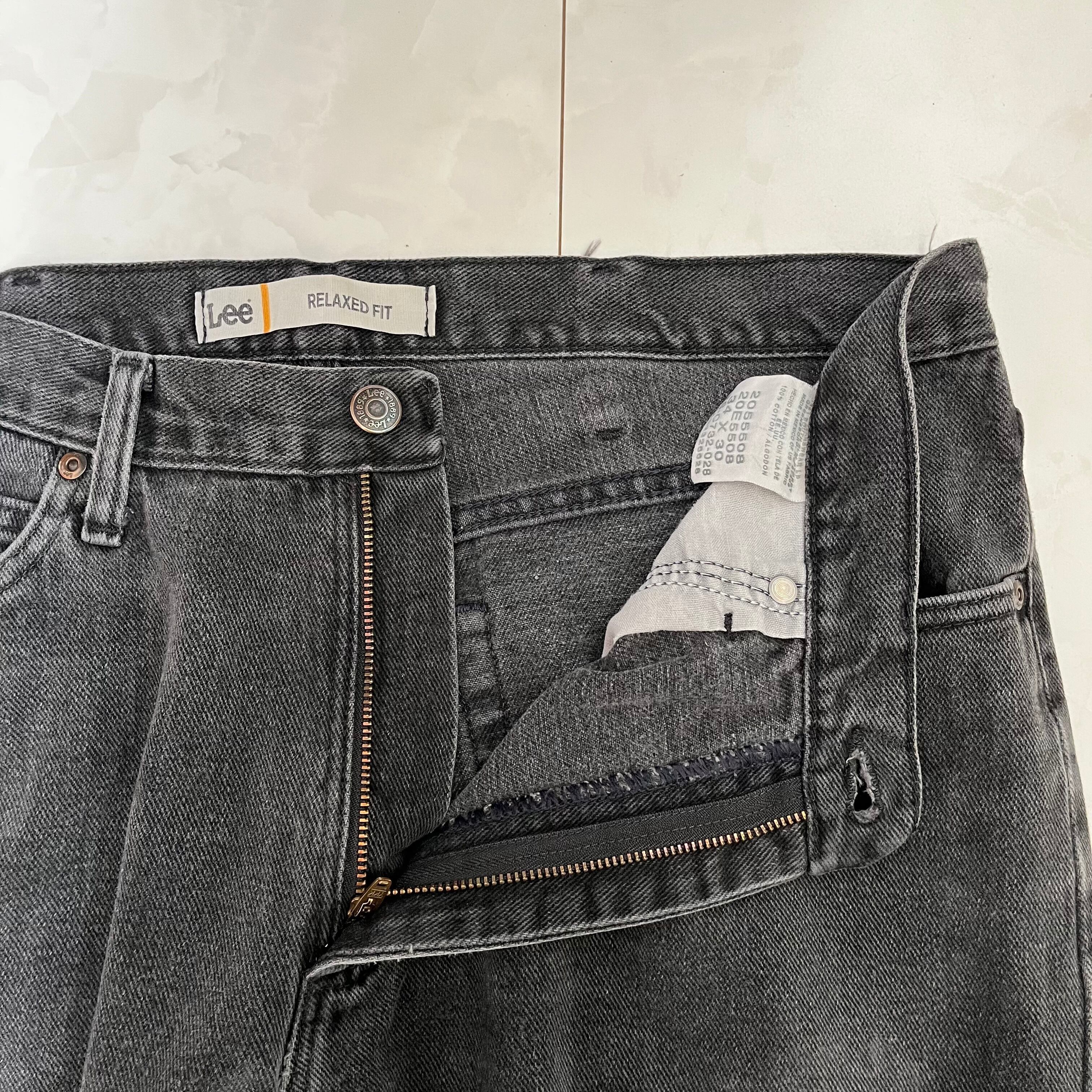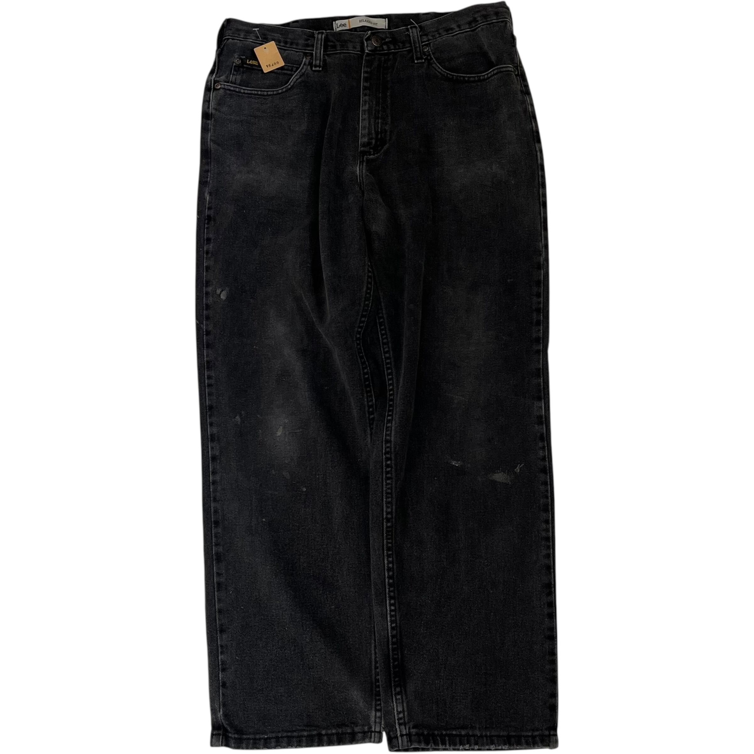 【W34×L30】Lee ブラックデニムパンツ 革パッチ