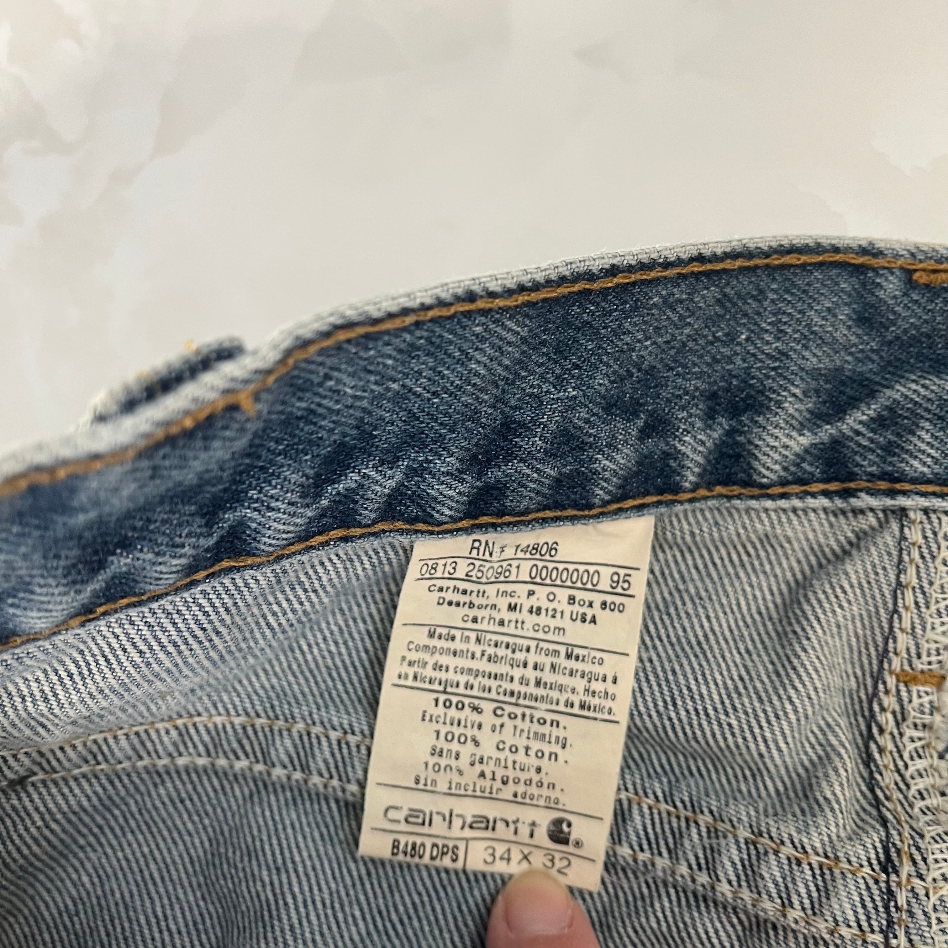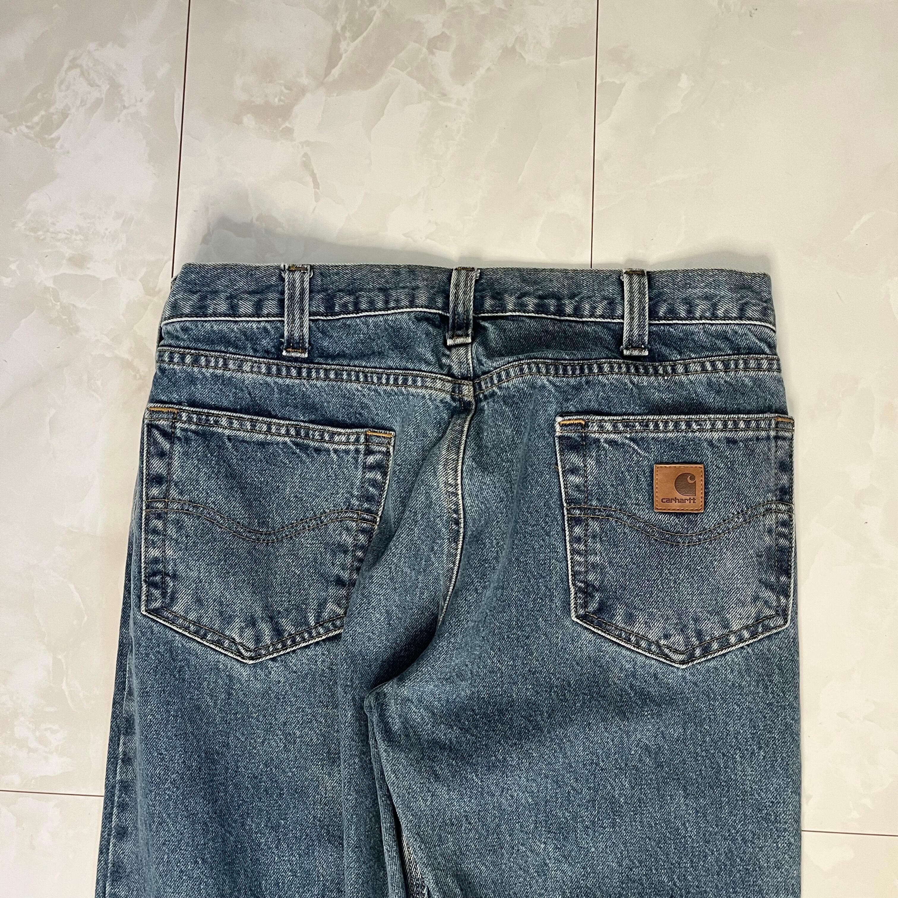 【W34×L32】Carhartt デニムパンツ 革パッチ