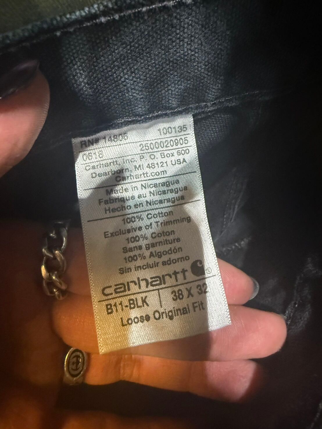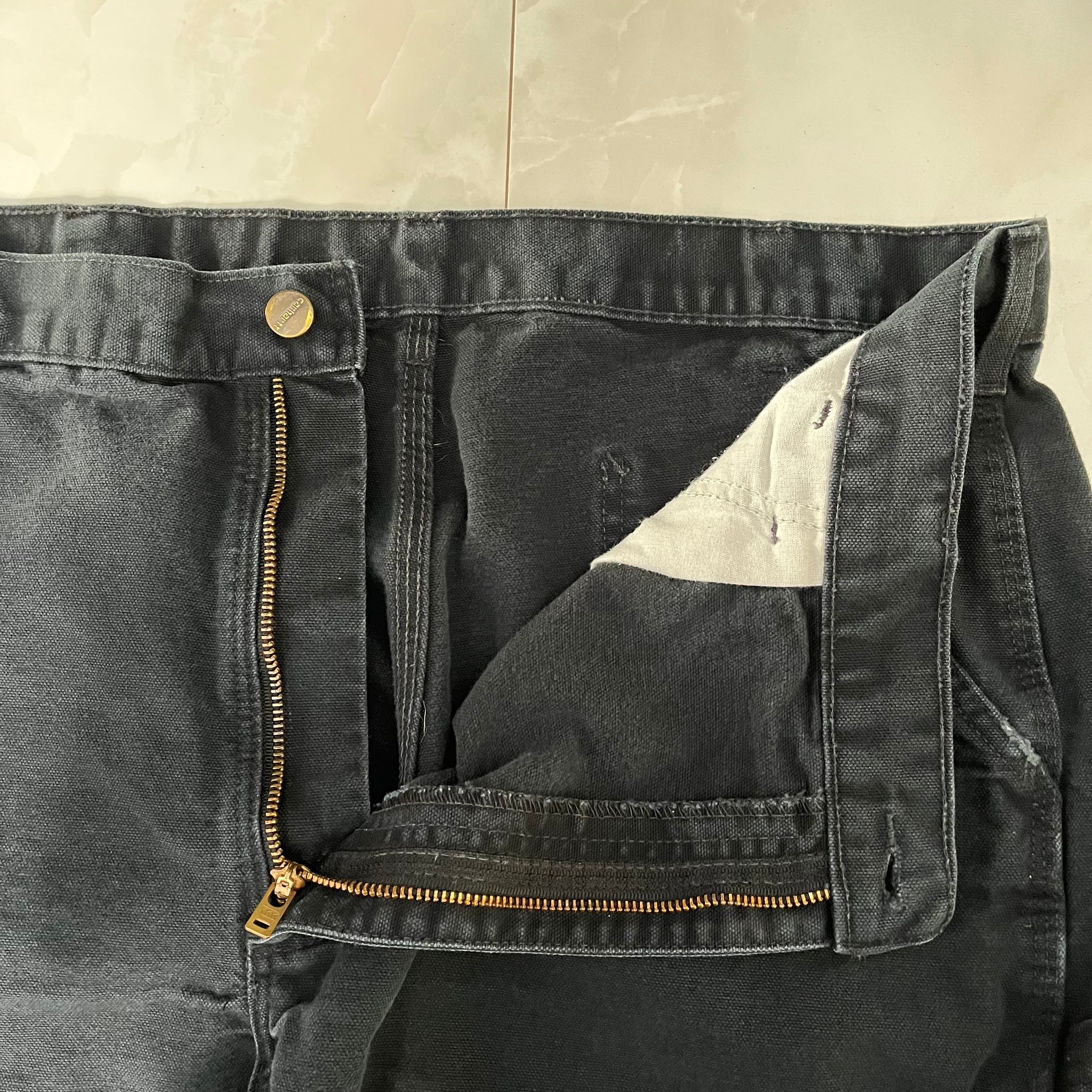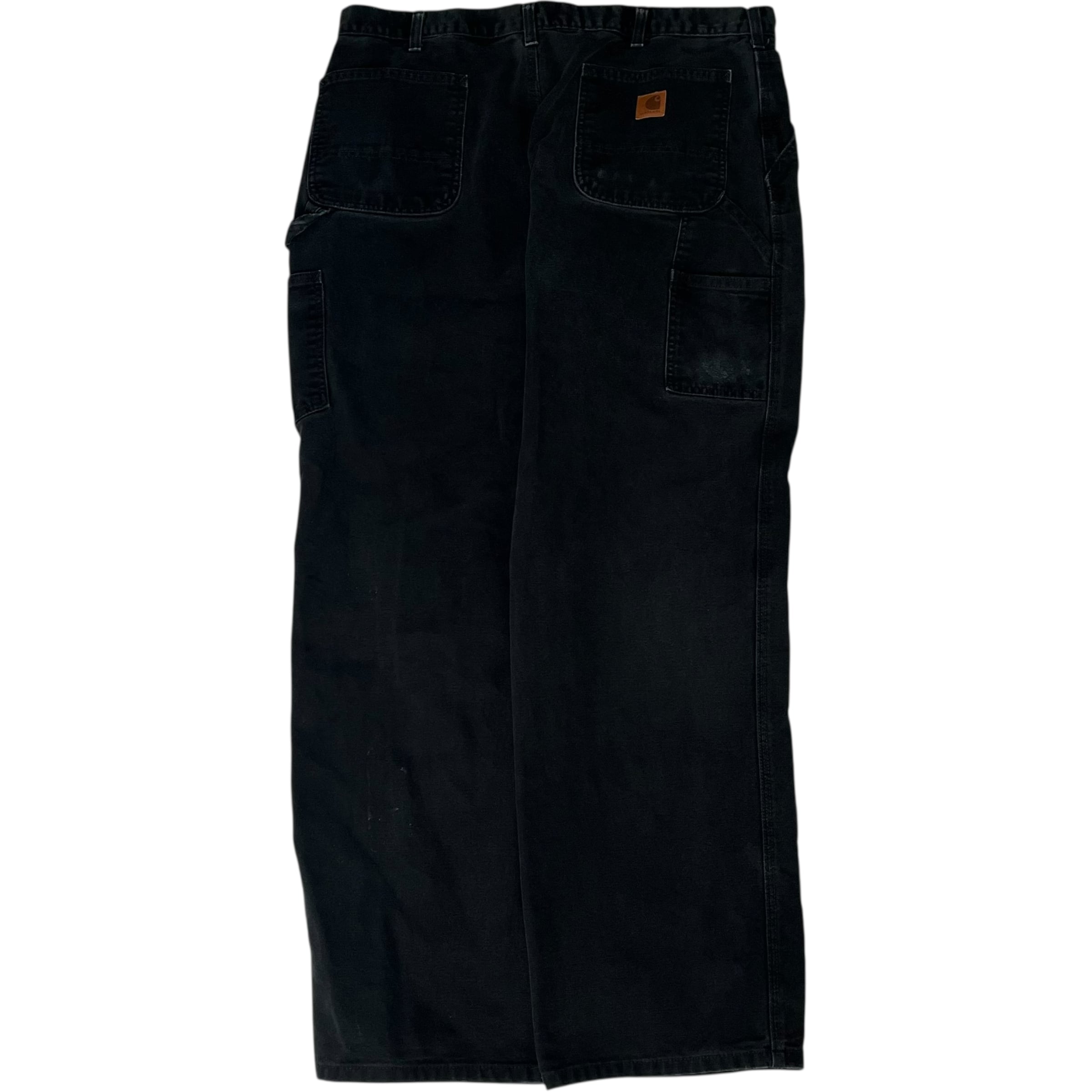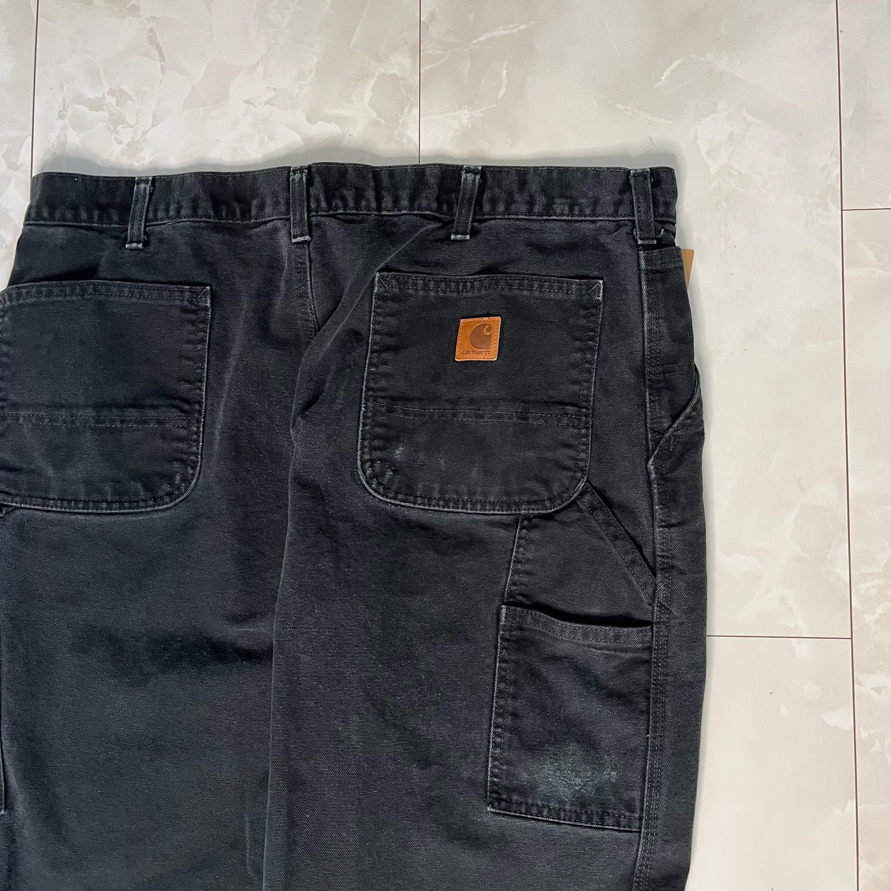 【W38×L32】Carhartt ブラックデニムペインターパンツ 革パッチ