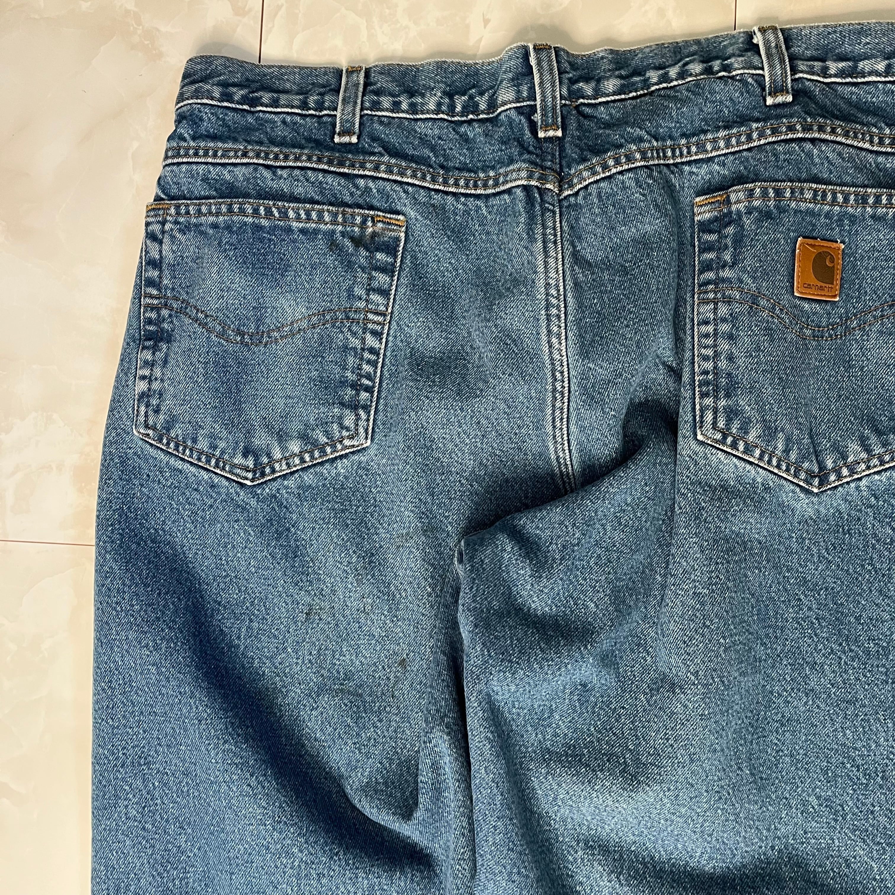 【W36×L30】Carhartt デニムパンツ 革パッチ