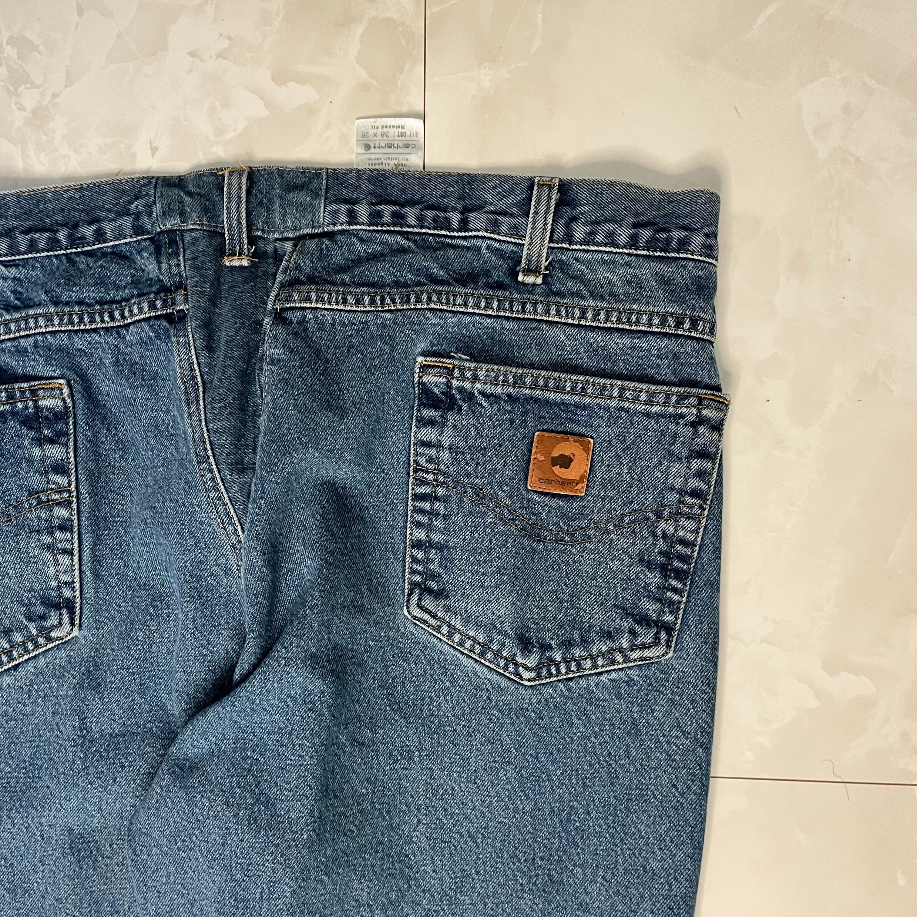 【W38×L28】Carhartt デニムパンツ 革パッチ