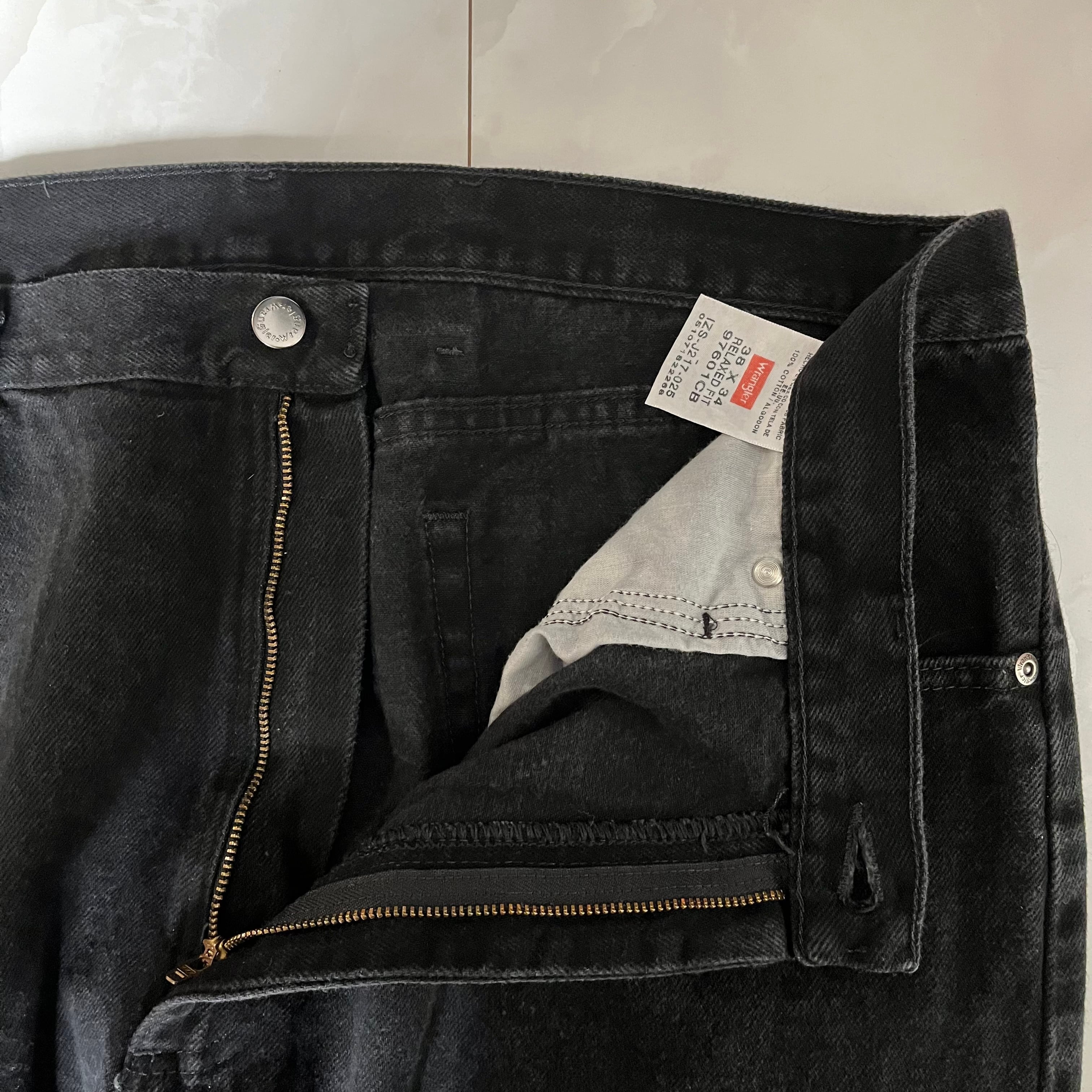 【W38×L30#裾上げ済み】wrangler ブラックデニムパンツ