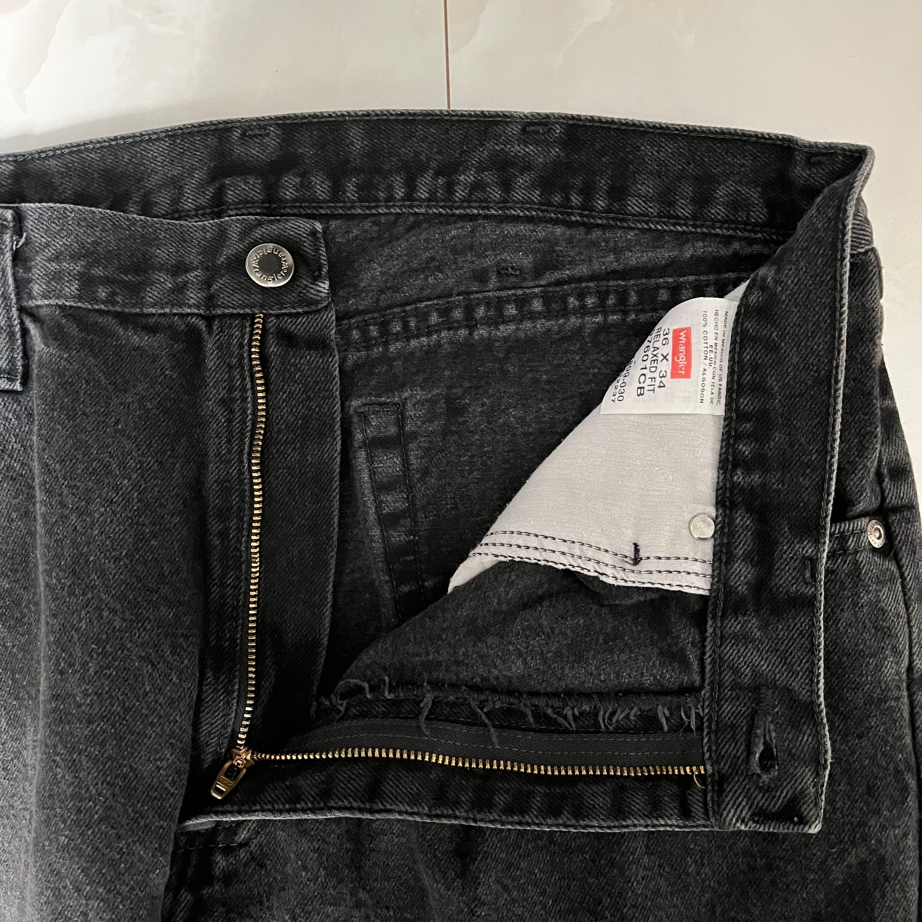 【W36×L30#裾上げ済み】wrangler ブラックデニムパンツ
