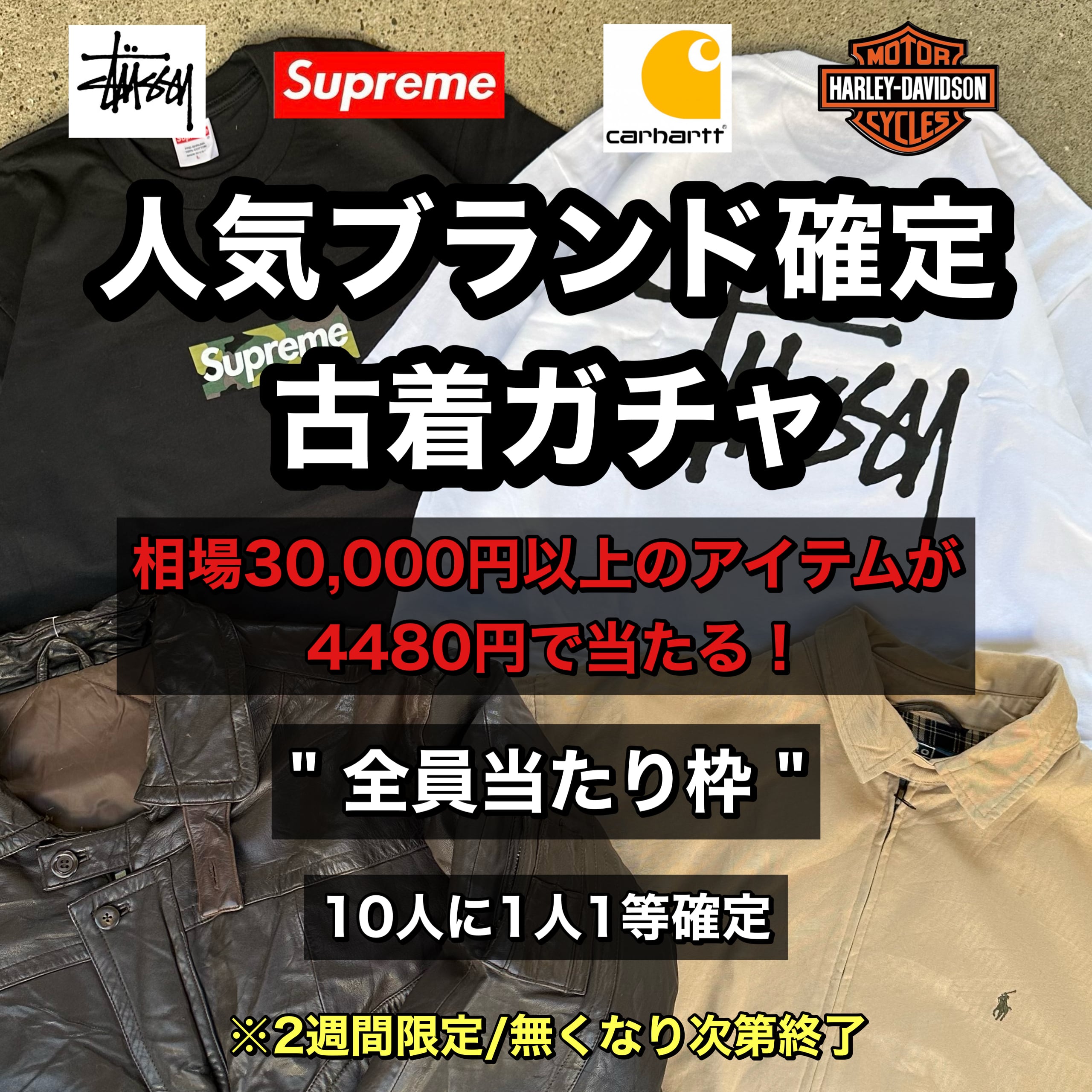 1回4480円で人気ブランド古着が当たる