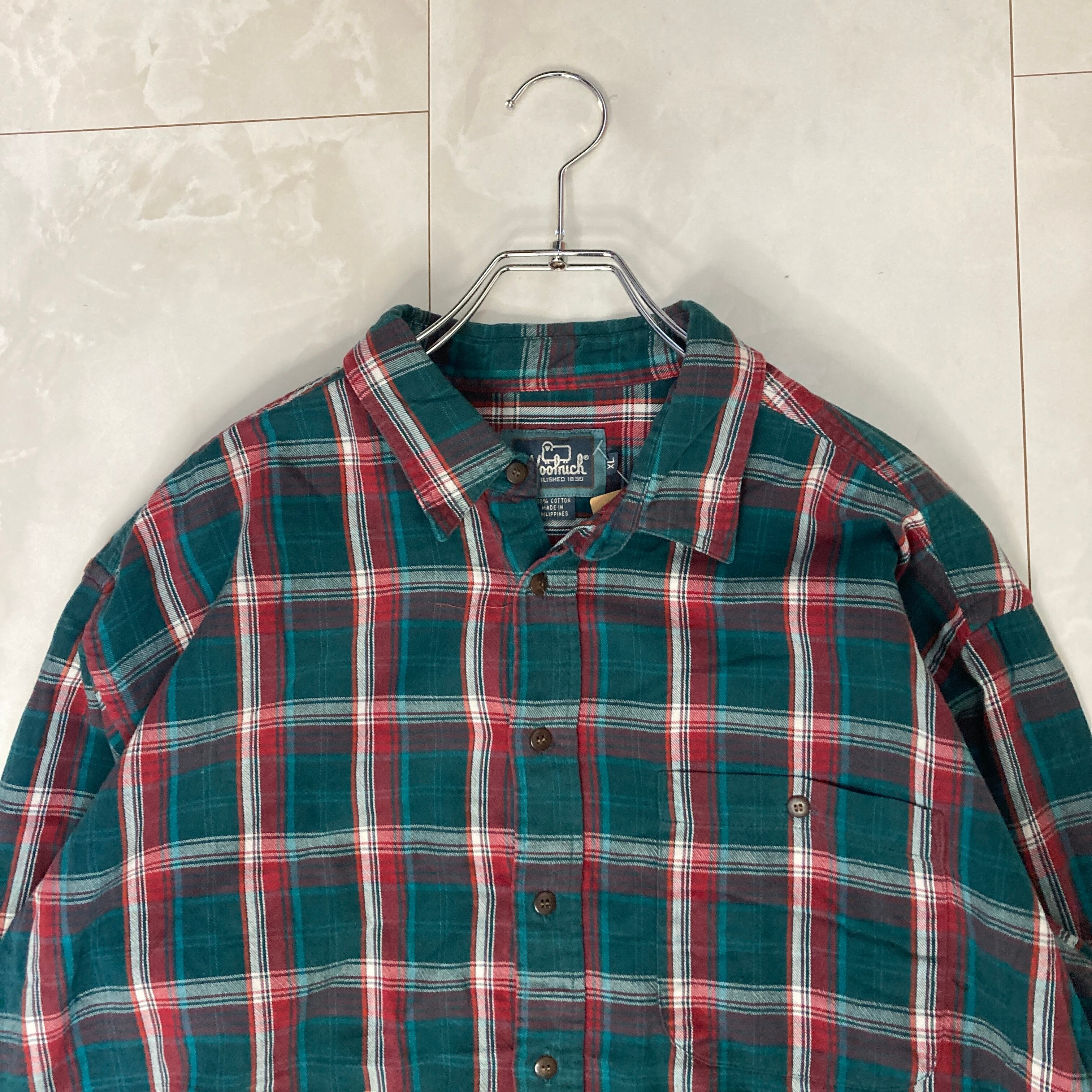 【80’s】【短丈リメイク】Wool rich ヘビーネルシャツ XL チェック柄 vintage