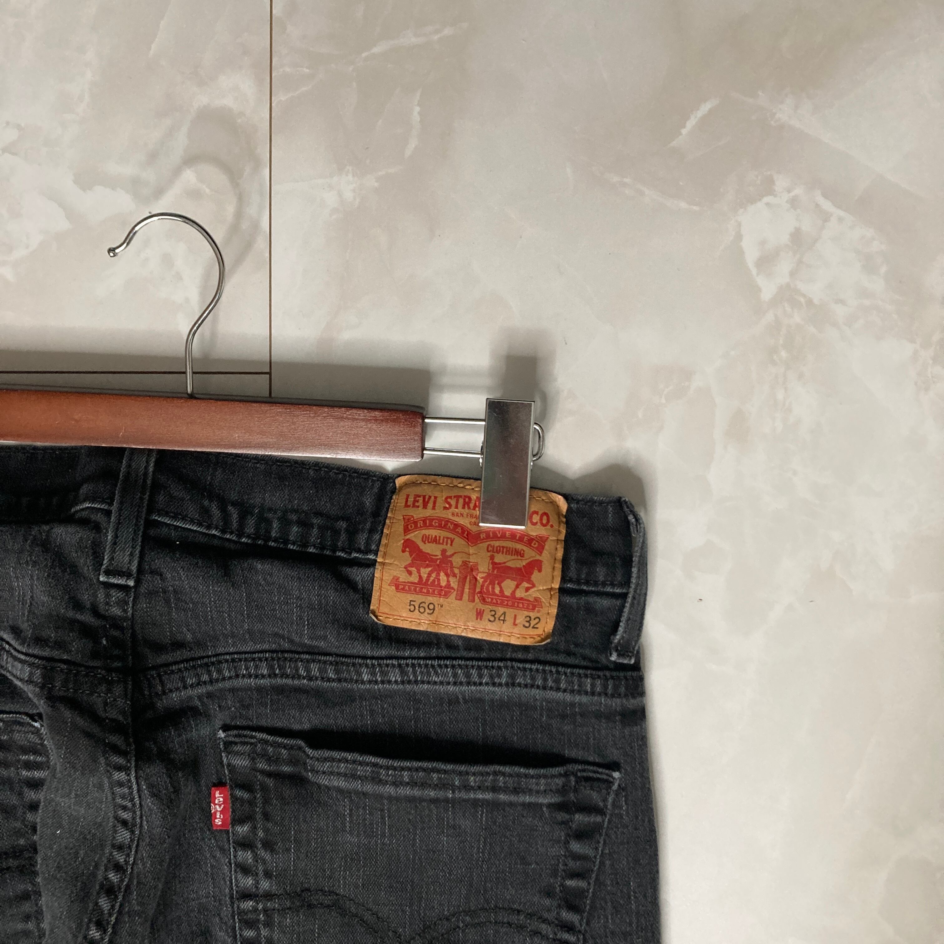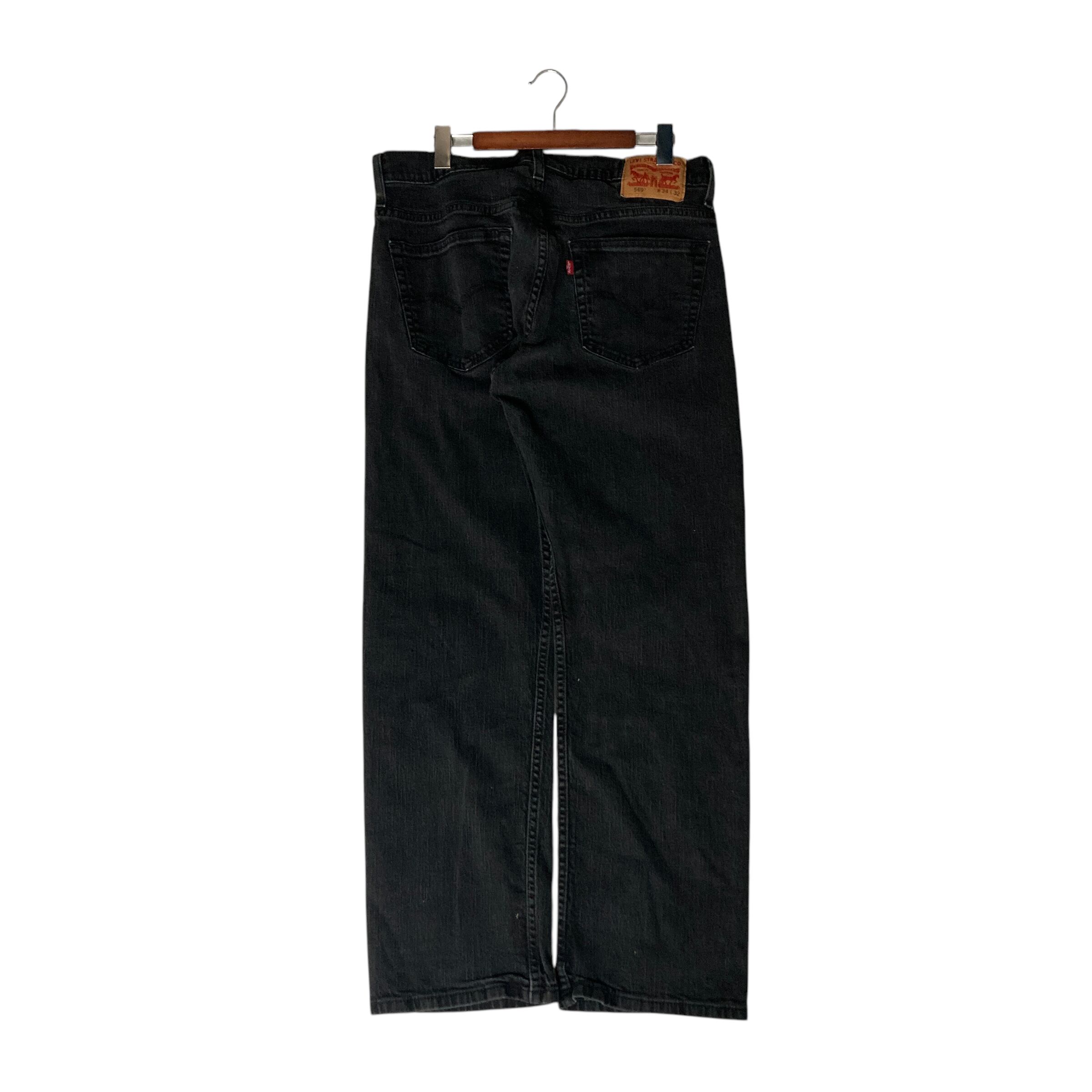 【W34×L32】Levi's569 ブラックデニムパンツ 革パッチ